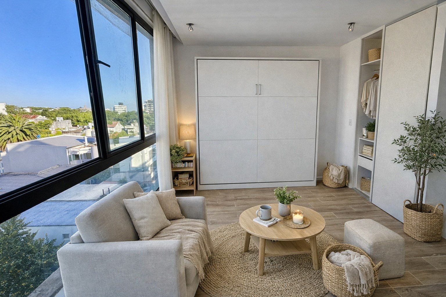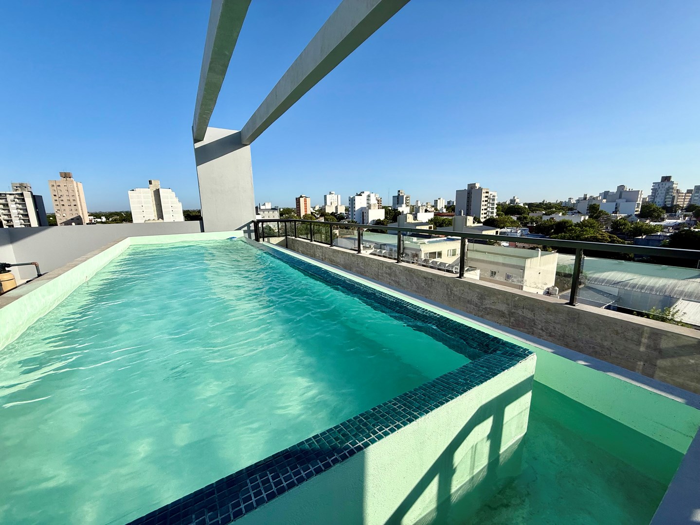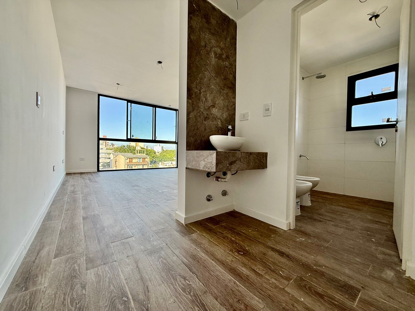 Hermoso unidad ideal para alquiler temporario o vivenda de categoría con cochera ubicado en 4 e 64 y 65, cuenta con 38m2 muy bien distribuidos. Posee pisos de porcelanato, cocina semi integrada, anafe a gas, ventilación natural, bacha de acero doble, mueble bajomesada, amplio ventanal que aporta luminosidad a todo el departamento,antebaño u baño completo con ventilación natural, santiarios y griferías de primera línea, aire acondicionado frio/calor, cuenta con cerradura digital, cámaras de seguridad, cocheras opcionales Cuenta con climatización central radiante El edificio cuenta con amenities como terrraza con pileta climatizada y un deck con solarium