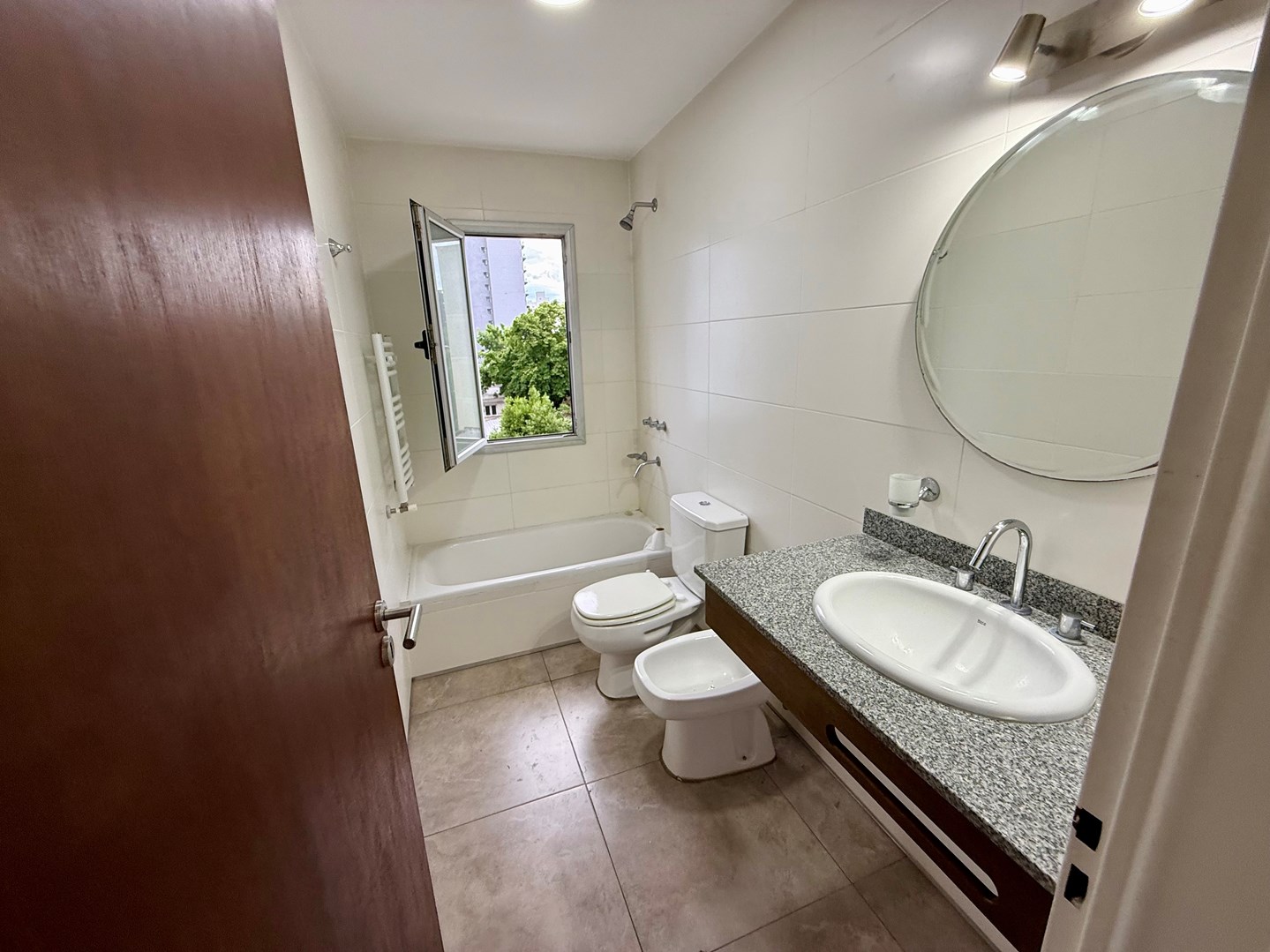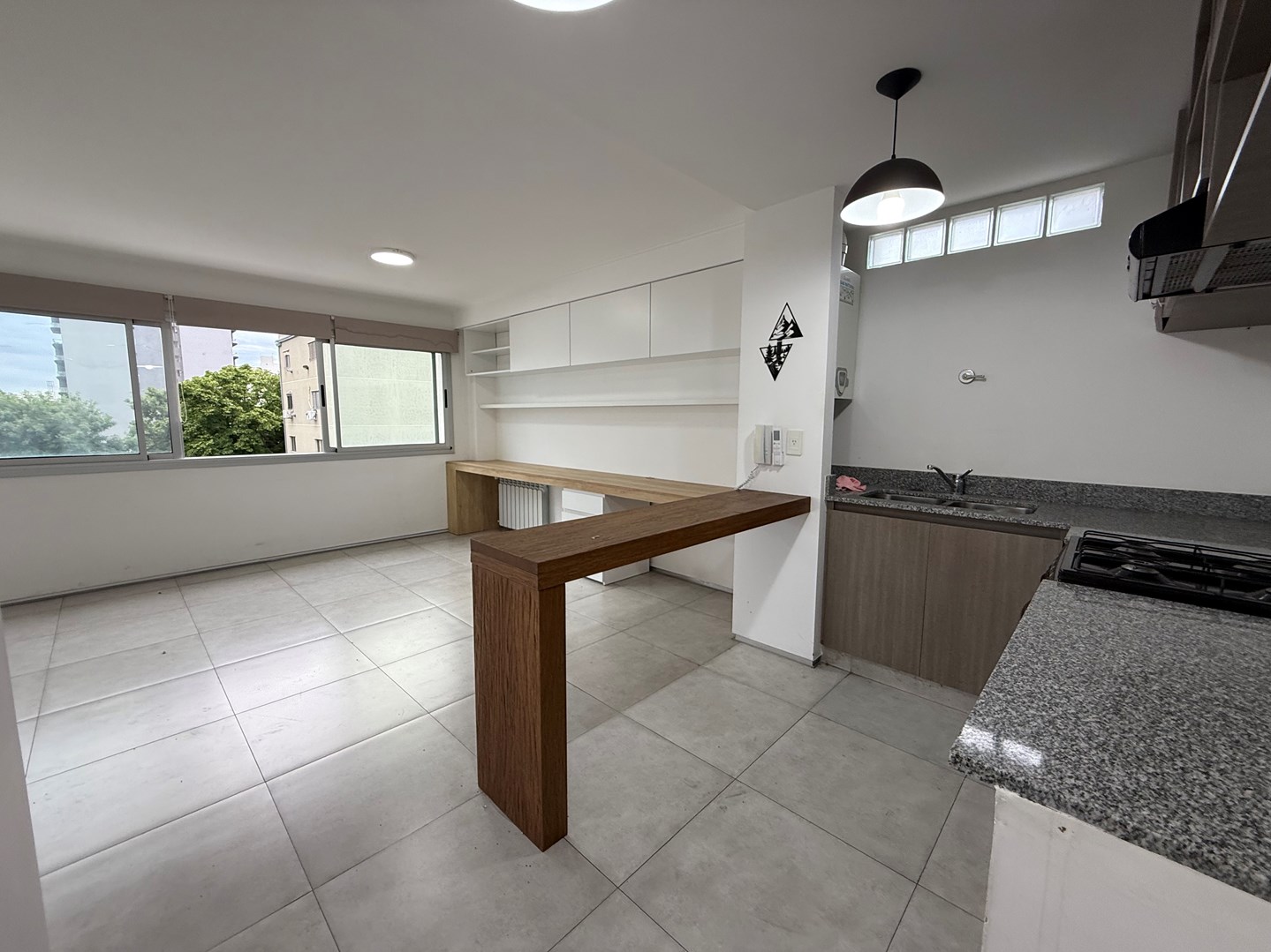 Departamento de 1 dormitorio sobre Plaza Sarmiento – excelente calidad constructiva Ubicado en un tercer piso al contrafrente, este moderno departamento de 49 m² se destaca por su luminosidad y diseño funcional. Cuenta con un dormitorio con placard completo e interiores terminados, baño con ventilación natural, y un amplio estar-comedor integrado a la cocina mediante una barra desayunadora. La cocina posee espacio para lavarropas y equipamiento de excelente calidad. Dispone de calefacción por radiadores con caldera dual, garantizando confort durante todo el año. Edificio de 6 años de antigüedad, ubicado en una zona privilegiada frente a Plaza Sarmiento, con entorno tranquilo y acceso rápido al centro de la ciudad.