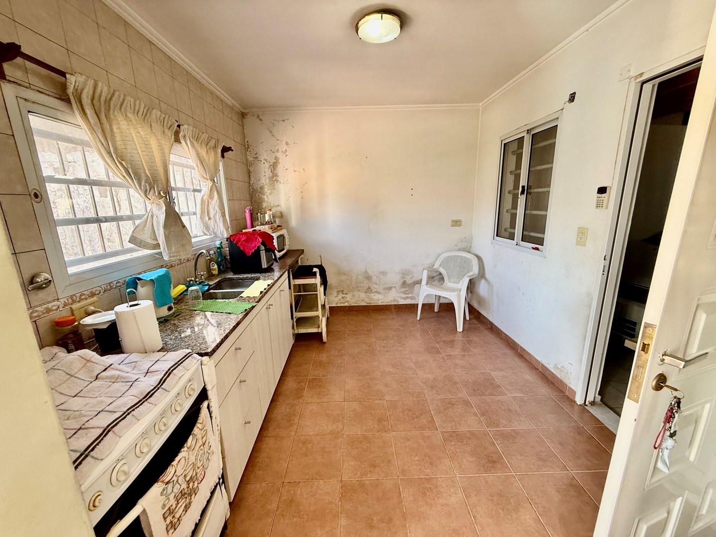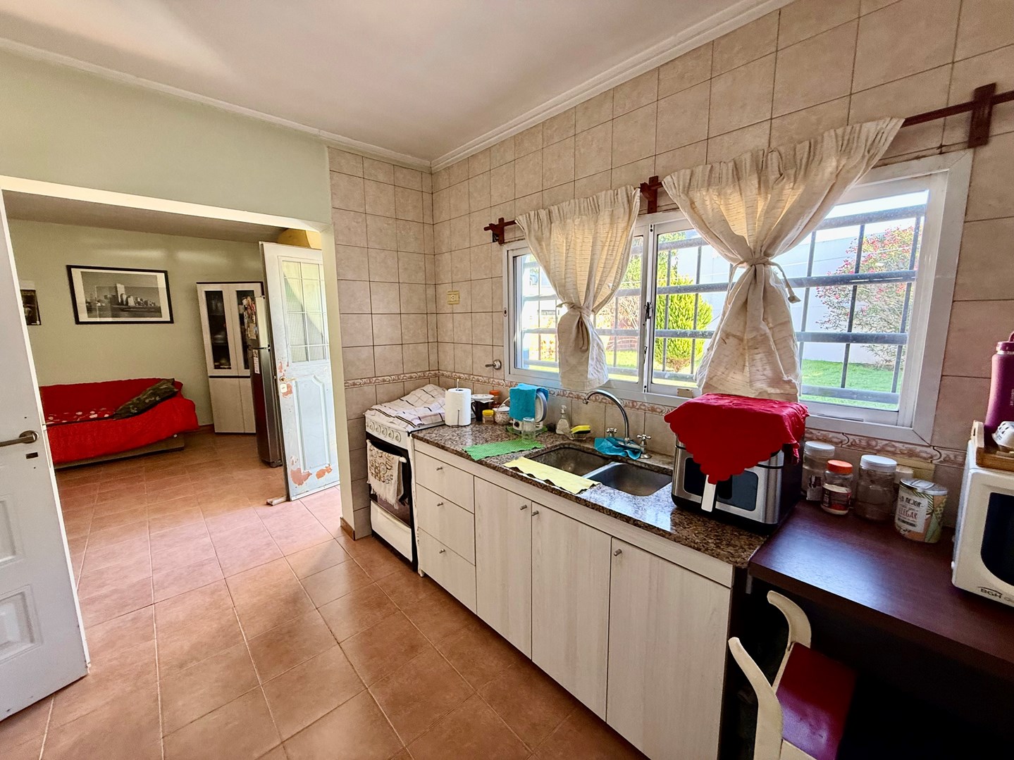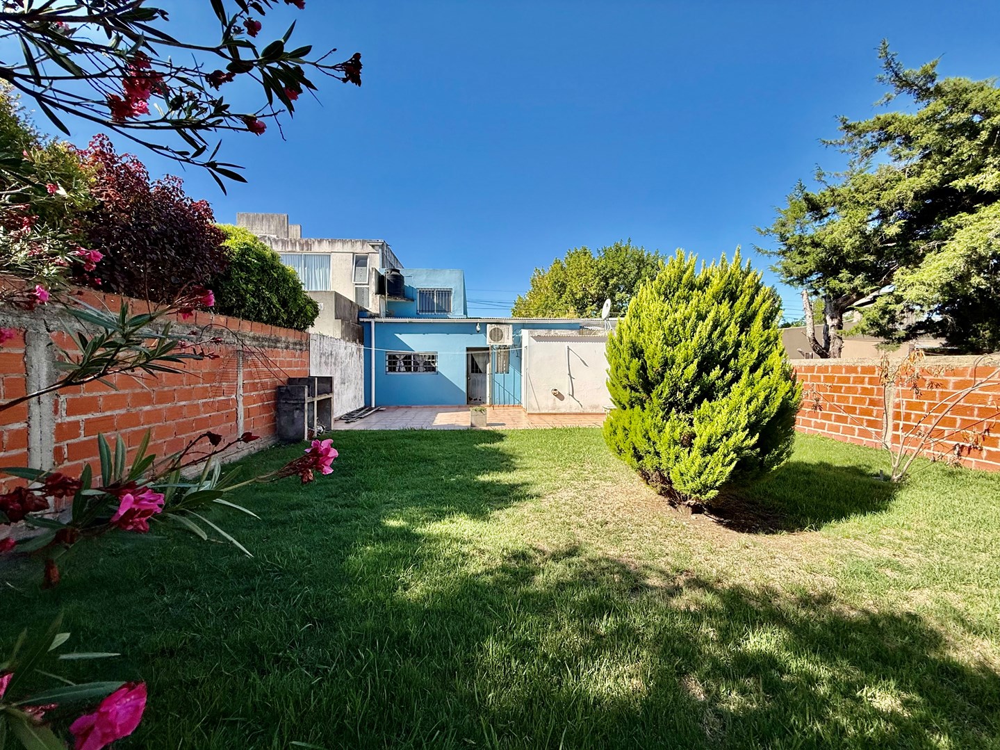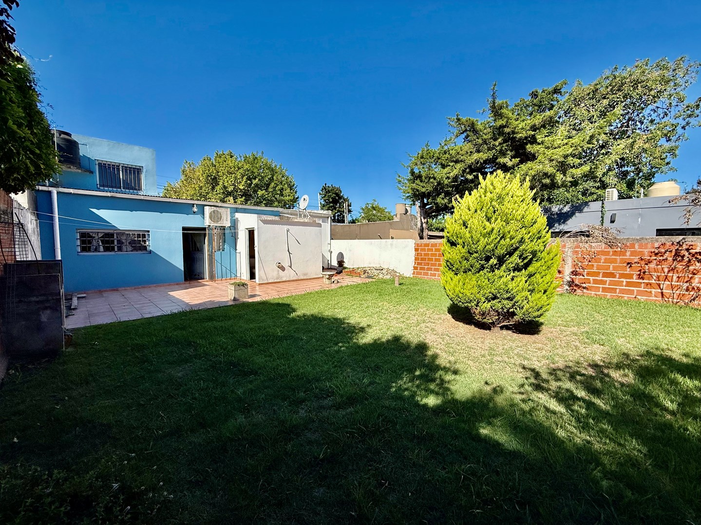 Excelente casa APTO BANCO de 3 dormitorios, desarrollada sobre lote propio con 11.5 de frente x 27 metros de fondo, cuenta con amplio garage para camioneta grande o 2 autos y gran fondo verde. Ubicada sobre calle asfaltada, con todos los servicios, en un entorno residencial consolidado, a pasos del barrio Meridiano V La vivienda se distribuye de manera funcional y muy cómoda: Dos dormitorios en planta baja, Tercer dormitorio por escalera tipo altillo, ideal escritorio, habitación juvenil o espacio multifunción Amplio living comedor, luminoso y de muy buenas dimensiones, cocina independiente con muebles bajo mesada, con vista directa al jardín, Baño completo con duchan el exterior, la propiedad cuenta con amplio fondo verde, con excelente potencial para plantear construccion independiente, o para 2 familias dentro del mismo lote, lavadero al exterior con toilette, muy funcional para herramientas, bicicletas o depósito