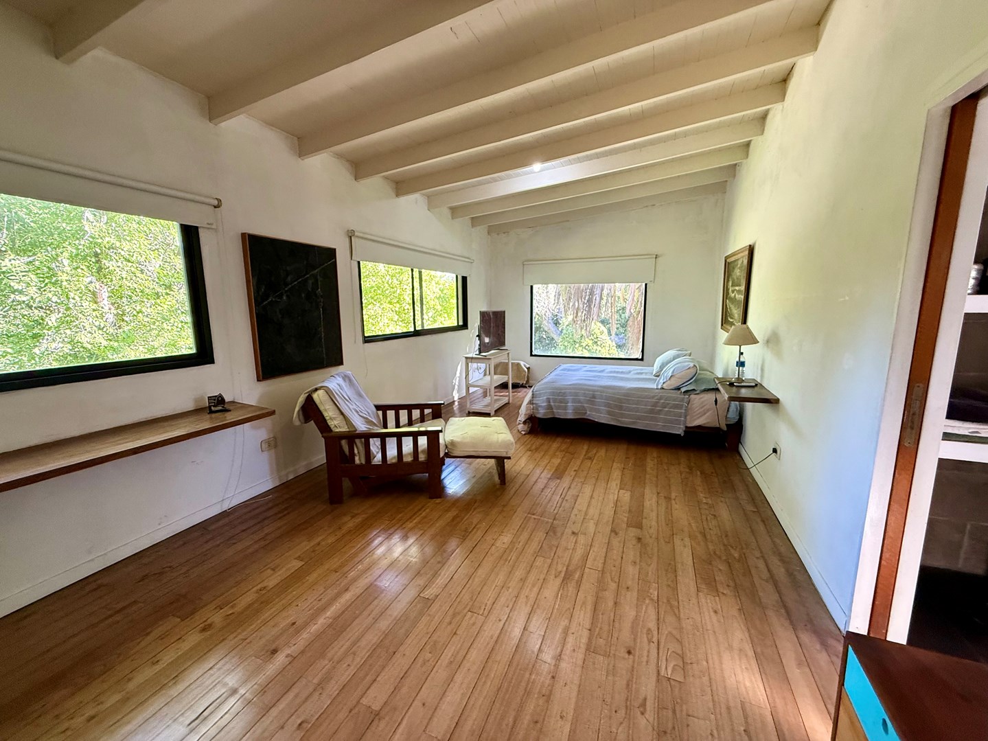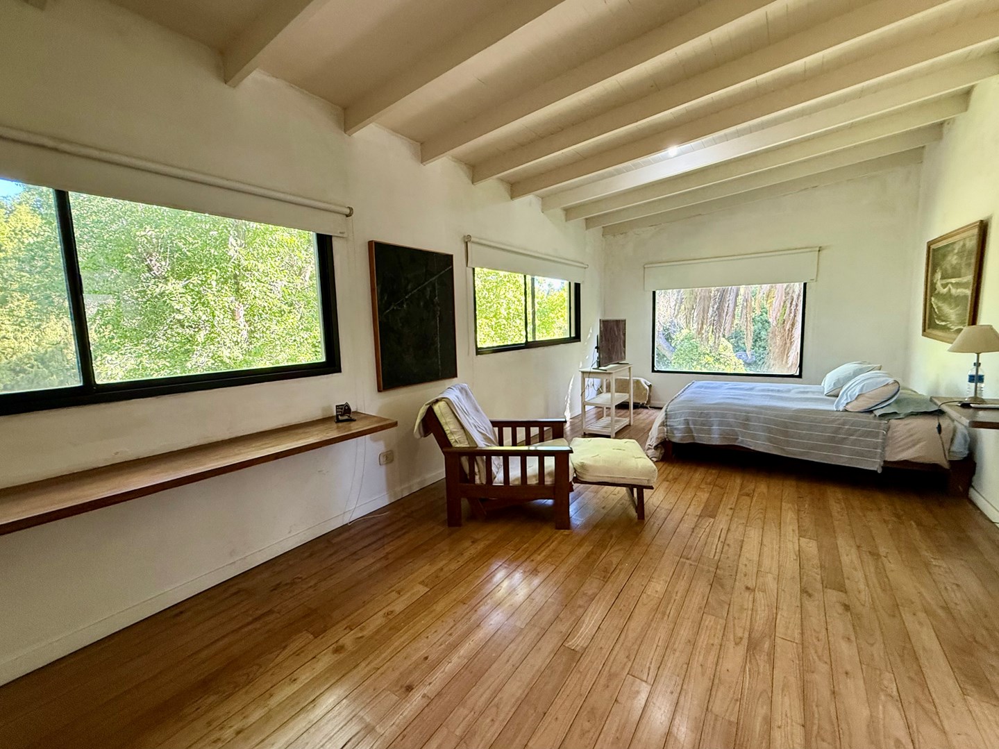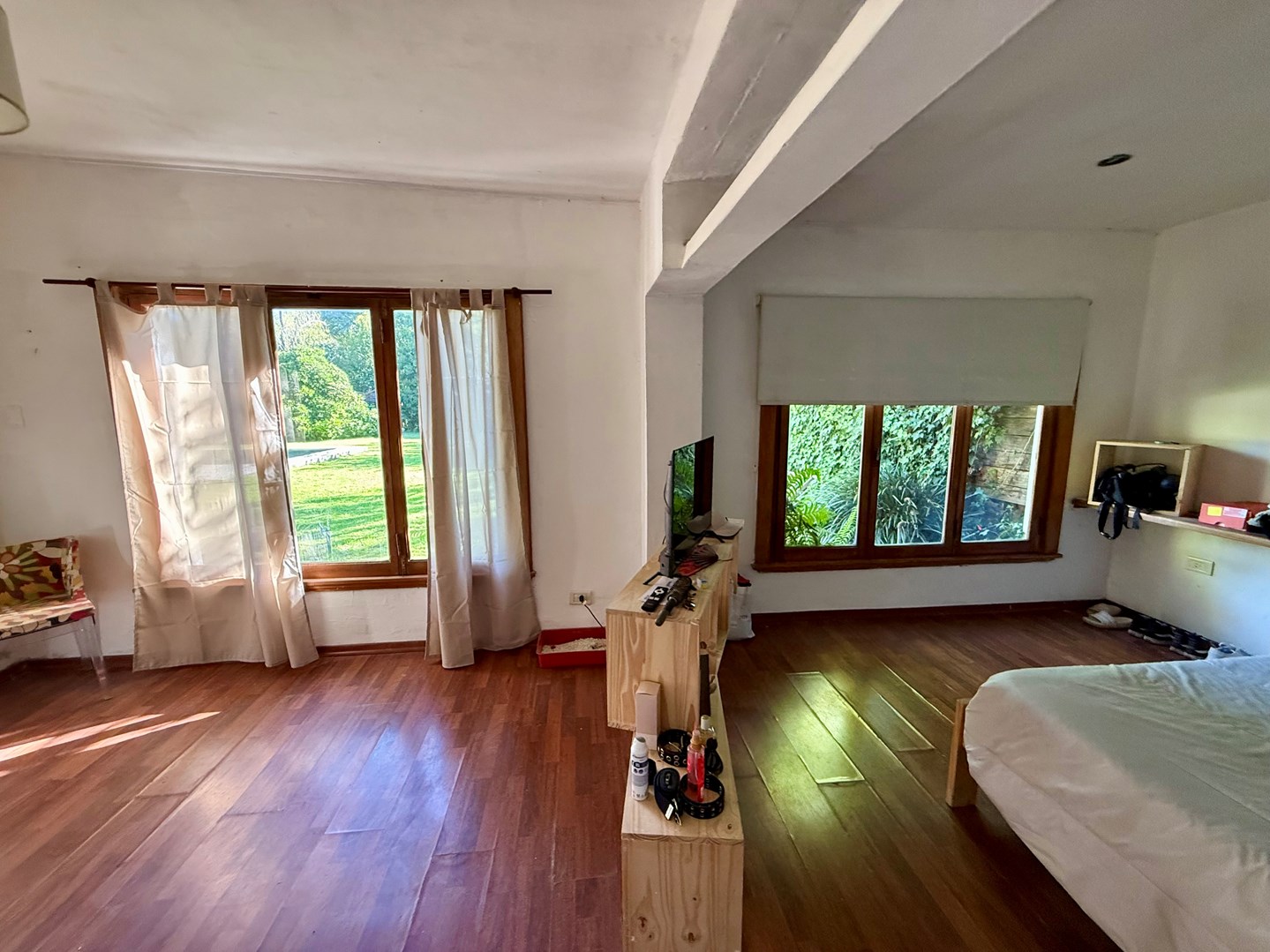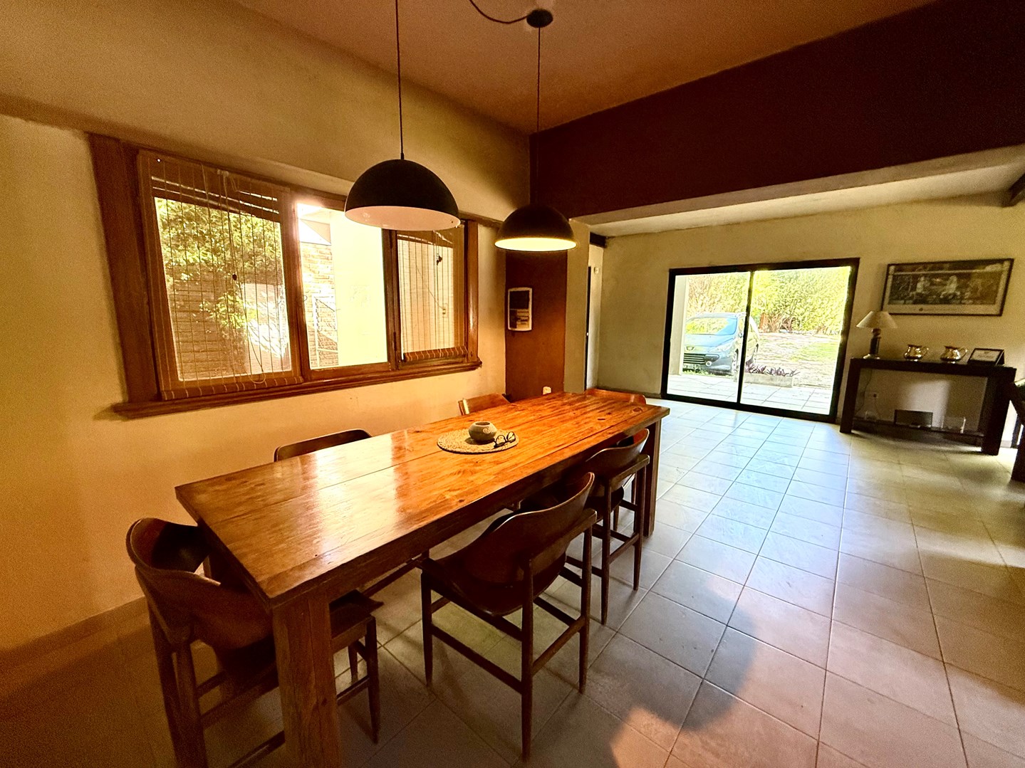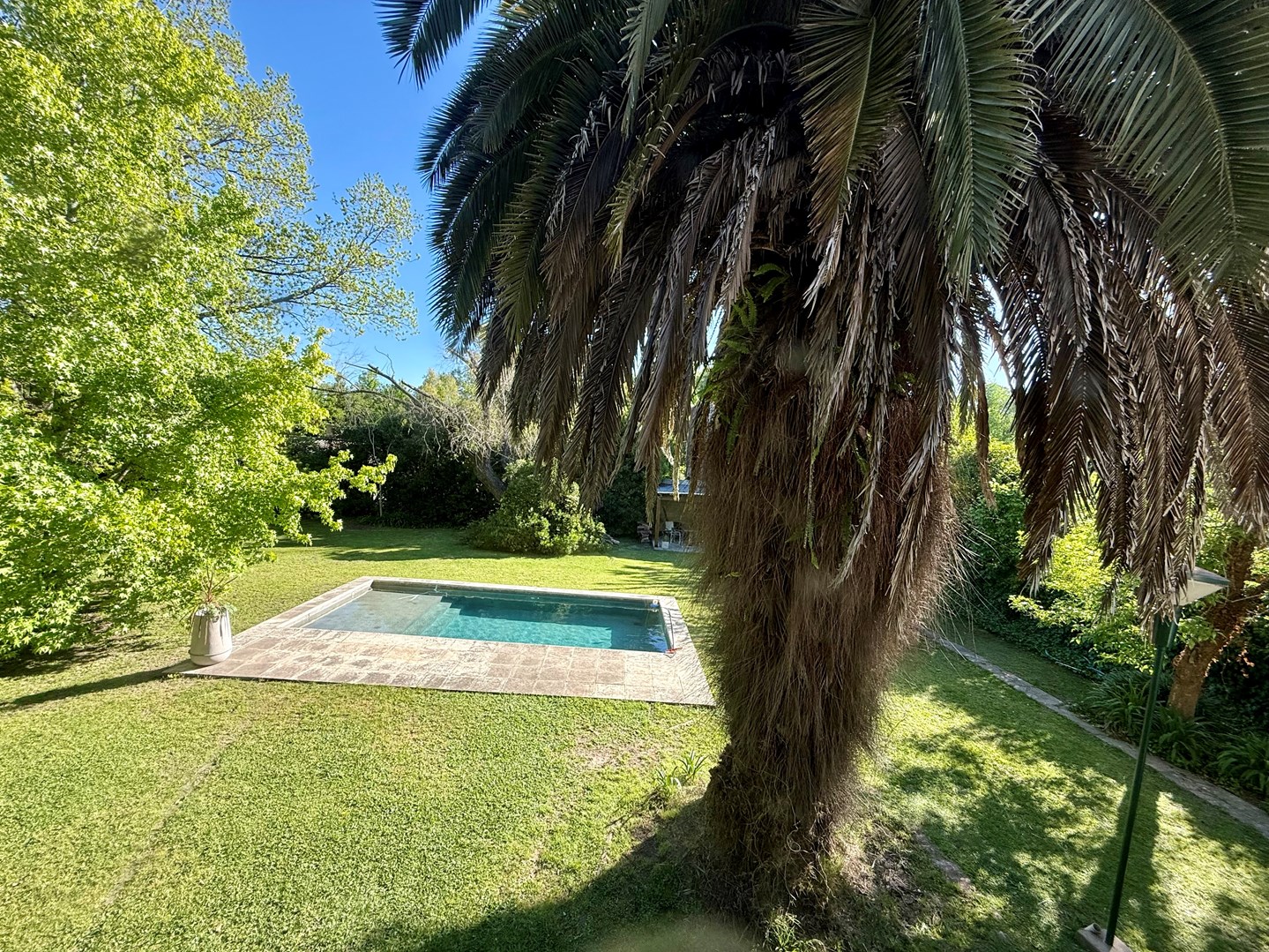 Casa en venta en Villa Elisa – 4 dormitorios – Parque con pileta – Acepta permuta Propiedad ubicada en calle 25 esquina 426, dentro de un entorno residencial tranquilo, rodeado de verde y con excelente acceso a vías principales. La vivienda se desarrolla en dos plantas sobre un lote de 1.736 m² parquizado con árboles añosos, espacios abiertos y una pileta ideal para disfrutar en familia. Cuenta con 130 m² cubiertos bien distribuidos, priorizando la luminosidad y la funcionalidad de cada ambiente. Planta baja: Living con estufa hogar y amplios ventanales con vista al parque, cocina equipada con muebles bajo mesada y ventana al jardín, comedor integrado, tres dormitorios con buena ventilación natural, baño completo y un patio interno que aporta luz y conexión entre los ambientes. Planta alta: Dormitorio principal tipo suite, con piso de madera, vestidor, baño completo y amplios ventanales con vista abierta al entorno natural. Ubicación: A pocos metros del Camino General Belgrano, con rápida salida hacia Camino Centenario por calle 426. Cercana a paradas de micros, lo que permite una conexión cómoda con La Plata y localidades vecinas. Observaciones: La propiedad toma permuta por inmueble de menor valor. Una opción ideal para quienes buscan espacio, naturaleza y comodidad, en una de las zonas más atractivas de Villa Elisa.