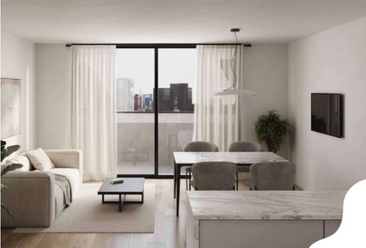 Monoambiente con balcón en venta en calle 24 e/ 37 y 38 La Plata al contra frente en pozo. El emprendimiento consta de diez niveles, que incluye planta baja, ocho niveles de departamentos y un último nivel que ofrece una terraza de uso común con salón de usos múltiples. En la planta baja, se encuentra el hall de acceso general a las unidades funcionales y a las cocheras. Cada uno de los ocho niveles de departamentos alojará 3 unidades por piso. En cuanto a sus características constructivas, se destaca la presencia de carpinterías de aluminio de línea Módena 3 o superior, tipo A30, con vidrio DVH para un mejor aislamiento térmico y acústico. Además, se colocará porcelanato rectificado en todos los espacios, incluyendo baños y cocina. Los baños contarán con revestimiento de porcelanato, grifería y artefactos sanitarios de primera calidad, y en el sector de la ducha se incluirá un divisor de vidrio laminado, así como una bacha sobre una encimera de granito. La cocina estará equipada con horno eléctrico y anafe a gas, con muebles bajo mesada de diseño moderno y una mesada de granito gris mara. Cada unidad contará con calderas de doble servicio (Dual) y radiadores incluidos. También, se contará con la instalación (kit de preinstalación) completa para recibir acondicionamiento mediante equipos tipo Split en todos los ambientes. FECHA ESTIMADA DE FINALIZACIÓN: MEDIADOS DE 2027