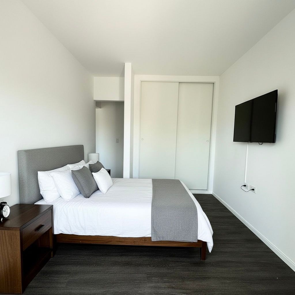 Departamento semipiso Ubicado en Calle 39 e/ 9 y 10 de dos dormitorios y dos baños con cocina separada y lavadero.Posibilidad de cochera. Terraza de uso comun. En los dormitorios/estar se prevé la colocación de piso flotante de vinilo de primera calidad, de 4.2 mm de espesor. (resistentes al agua). En los baños y cocinas se colocará porcelanato, así como revestimiento de baños y mampara. El antebaño tiene mesada de granito New Beige de 2cm de espesor y pileta oval. Los artefactos y accesorios del baño serán marca Roca, línea DAMA SENSO, con descarga a VÁLVULA. La cocina contará con anafe vitrocerámico inductivo y digital, horno empotrado y mesada con doble bacha de acero inoxidable marca Johnson, mueble bajo mesada en MDF completo, así como un desayunador r y un Termotanque eléctrico marca Ariston de 80 lts El exterior del edificio será terminado con látex exterior de MIKSAFRENT o similar. Todas las unidades estarán provistas de un portero visor color. Algunas imagenes cuentan con intervension de IA a los efectos de ilustrar la version final de los pisos terminados. ESTIMACION DE ENTRAGA MAYO 2026, CONSULTAR POR UNIDADES DISPONIBLES