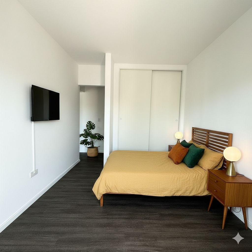 Departamento Ubicado en Calle 39 e/ 9 y 10 de 1 dormitorio. Terraza de uso comun.Posibilidad de cochera. En los dormitorios/estar se prevé la colocación de piso flotante de vinilo de primera calidad, de 4.2 mm de espesor. (resistente al agua). En los baños y cocina se colocará porcelanato, así como revestimiento de baños y mampara. El antebaño tiene mesada de granito New Beige de 2cm de espesor y pileta oval. Los artefactos y accesorios del baño serán marca Roca, línea DAMA SENSO, con descarga a VÁLVULA. La cocina contará con anafe vitrocerámico inductivo y digital, horno empotrado y mesada con doble bacha de acero inoxidable marca Johnson, mueble bajo mesada en MDF completo, así como un desayunador, y un Termotanque eléctrico marca Ariston de 80 lts El exterior del edificio será terminado con látex exterior de MIKSAFRENT o similar. Todas las unidades estarán provistas de un portero visor color. Algunas imagenes cuentan con intervension de IA a los efectos de ilustrar la version final de los pisos terminados. ESTIMACION DE ENTRAGA JUNIO 2026, CONSULTAR POR UNIDADES DISPONIBLES algunas imágenes fueron modificadas con inteligencia artificial
