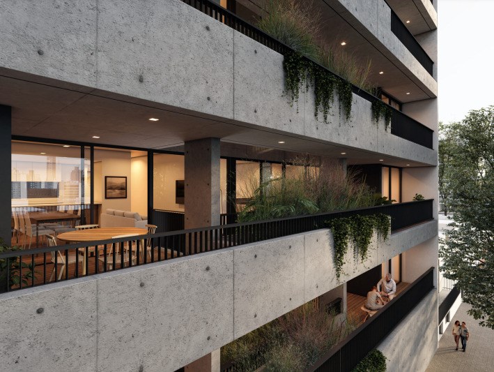 Departamento Ubicado en Calle 15 e 47 y 48, Cuenta con hall de acceso , cocina con isla, muebles bajo y sobre mesada de melamina, estar comedor , baño completo y amplio balcón .COCHERA. Carpinterías de aluminio color negro o pvc color negro con perfilería aluar con doble vidriado hermético Calefacción por radiadores, balcones aterrazados TERRAZAS DE MARÍN. Es un emprendimiento en construcción ubicado en el centro de la ciudad en la calle 15 e/ 47 y 48, emplazado sobre dos terrenos con una dimensión total de 17,50m de frente por 30,00 de fondo. El edificio cuenta con dos niveles de cocheras (planta baja y un subsuelo) y 9 niveles con unidades funcionales de uso mixto (estudios/oficinas y viviendas) organizadas en dos bloques (frente y contrafrente respectivamente) vinculados por el núcleo circulatorio. Siguiendo con nuestra serie de edificios donde la estructura de hormigón armado cumple otra vez con un rol protagónico en la materialidad de la obra, dimos forma a este nuevo emprendimiento donde predominan los espacios amplios, cómodos y con gran relación con el exterior. La vegetación de los balcones/terraza funcionan como un elemento propio del espacio interior-exterior, generando a su vez privacidad entre espacios exteriores.