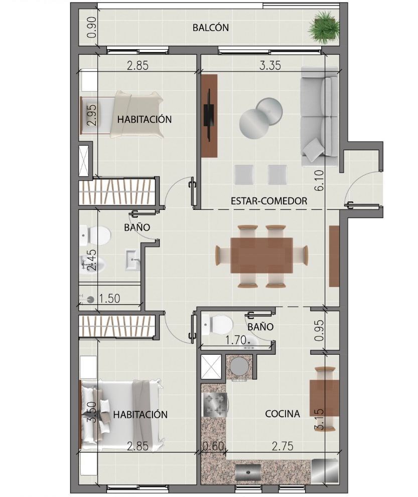 Departamento 2 Dormitorios Plaza Credil LXV Ubicado en calle 65 e 7 y 8 , en pleno casco urbano de La Plata La unidad se destaca por su excelente distribución, ambientes luminosos y detalles de calidad constructiva. Características principales: • 2 dormitorios con placares completos • 2 baños (uno completo y toilette) • Amplio living comedor • Cocina integrada con barra desayunadora • Balcón al frente con vista abierta • Aire acondicionado frío/calor en todos los ambientes • Carpinterías de aluminio y terminaciones modernas • Cochera cubierta Superficie aproximada: 75.4 m² totales. El complejo ofrece un entorno moderno y seguro, con espacios comunes y excelente conectividad a transporte, comercios, colegios y universidades. Ideal para vivienda propia o inversión en una de las zonas con mayor crecimiento de la ciudad. Consultanos para más información o coordinar una visita.
