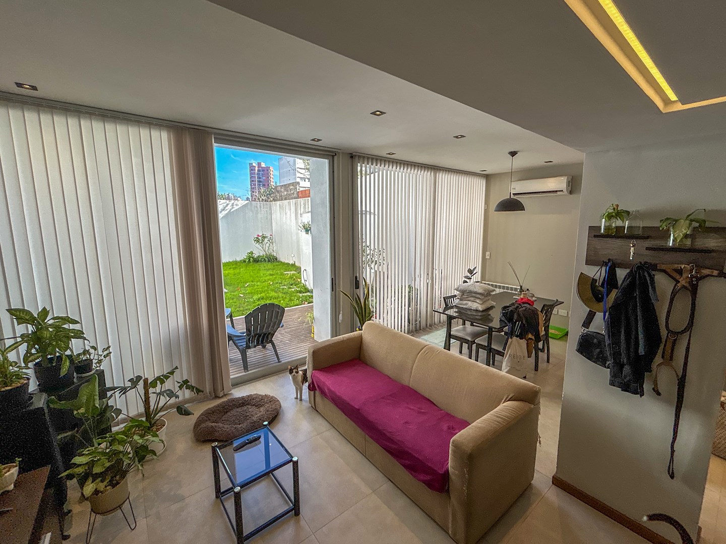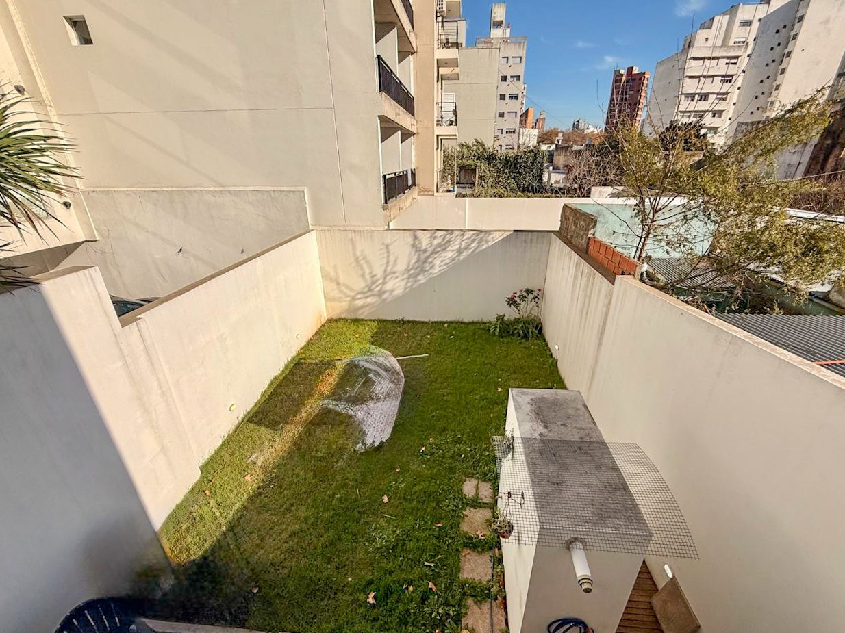 Duplex APTO BANCO en venta de 2 dormitorios en edficio moderno ubicado en zona tranquila y de facil acceso. En planta baja al ingresar cuenta con baño de servicio y un amplio y luminoso ventanal disponiendo el living con la cocina con muebles bajomesada semi integrada por una isla, al salir contamos con un amplio jardìn y deck de madera otorgando comodidad y un lugar de dsfrute, tambien cuenta con baulera En Planta Alta cuenta con dos amplios dormitorios con pisos de madera y placard completo, ademas el baño completo moderno Toda la calefaccion es por radiadores y aire acondicionado, todo el duplex posee aberturas de aluminio. Actualmente alquilado con clausula.